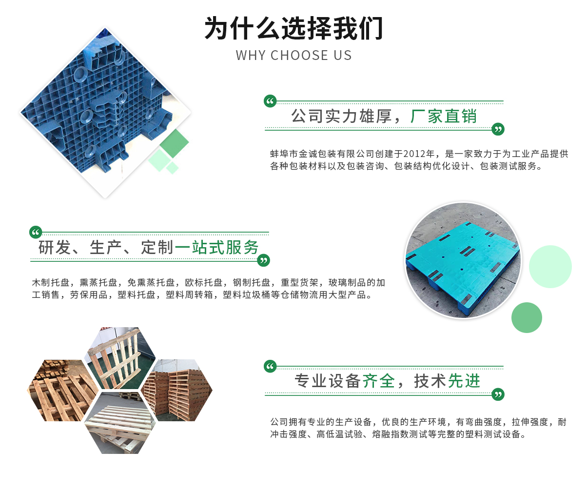 蚌埠市金誠包裝有限公司創(chuàng)建于2012年,是一家致力于為工業(yè)產品提供各種包裝材料以及包裝咨詢、包裝結構優(yōu)化設計、包裝測試其中包括木制托盤,熏蒸托盤,免熏蒸托盤,歐標托盤,鋼制托盤,重型貨架,玻璃制品的加工銷售,勞保用品...